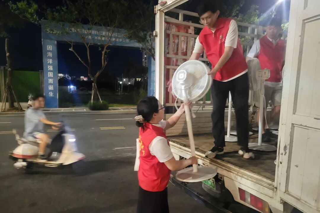 9月9日,三亚科教园理工党员服务站在创新研学谷、南繁安置区开展共享风扇暖心服务行动。