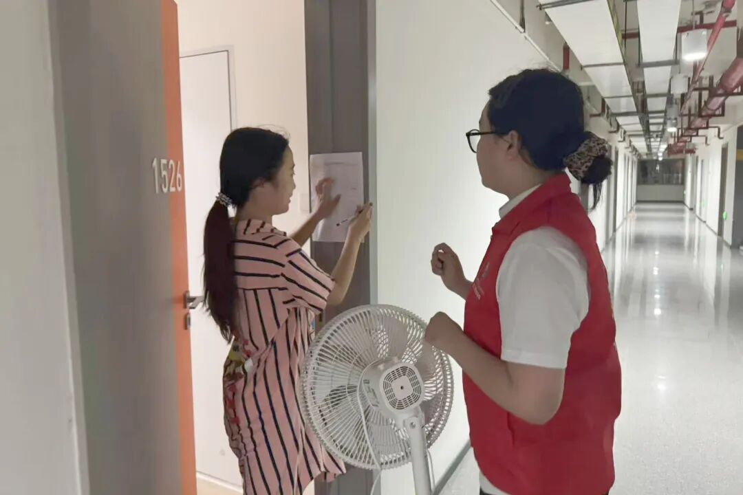 在活动筹备阶段,理工党员服务站党员志愿者通过走访调研和线上问卷收集学生需求,并招募组建志愿者服务队。活动当天,30名服务队志愿者分成五个小组,按照预定路线,严格对照编号清单,有序完成风扇出库、搬运、配送及签收登记等环节,最终将95台共享风扇全部送达同学们的宿舍。