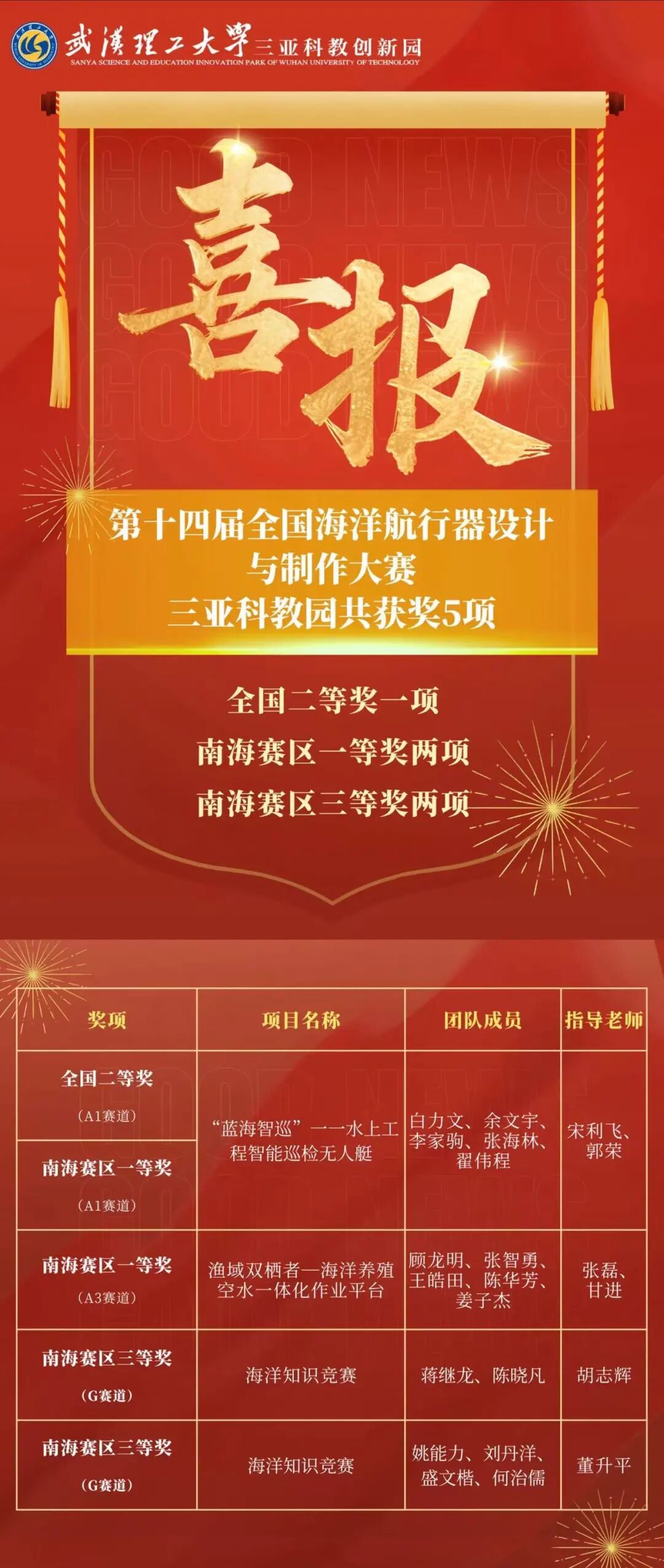 第十四届全国海洋航行器设计与制作大赛三亚科教园共获奖五项