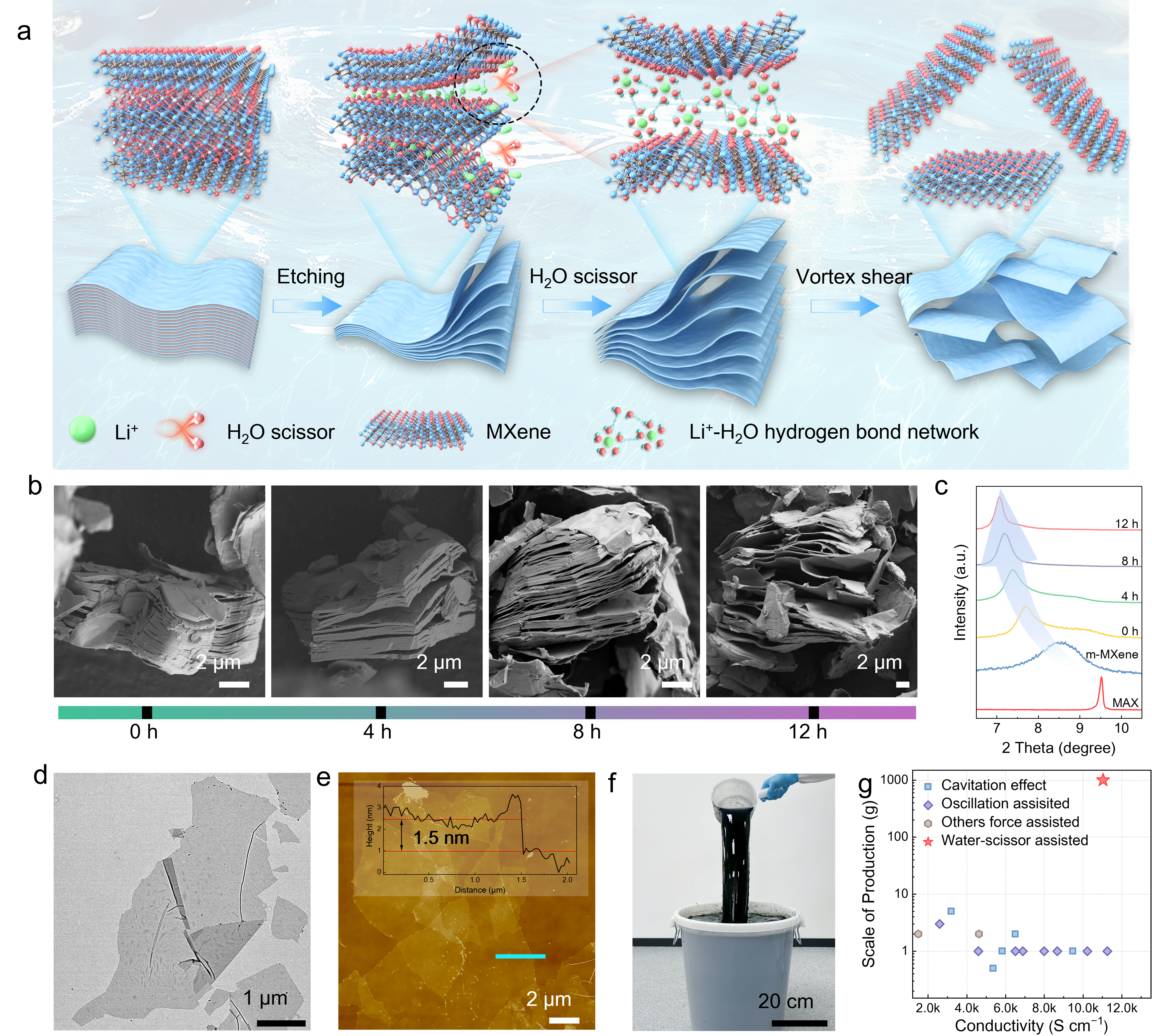 二维过渡金属碳化物(MXenes)因其卓越的导电性、亲水性和化学可调性,在电子器件、能源存储及离子分离膜等领域展现出巨大潜力。然而,MXene的制备长期受困于“质量-产量”悖论:传统高产剥离方法往往需要高能机械输入,容易引入大量晶格缺陷,导致其性能下降。