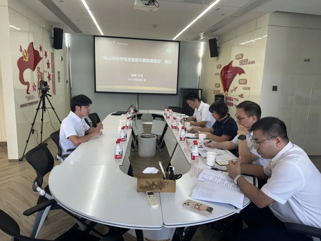 8月1日上午,三亚科教园组织开展2025年“南山港科考母港管理与服务精英班”面试工作,科教园副主任兼研究生院执行院长王军武主持工作会议。
